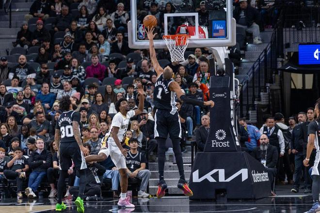 不过,文班亚马在防守端存在感极强,他是此战的篮板王和盖帽王。文班亚马在末节的防守端发力,帮助马刺连续防守反击得分。圣安东尼奥一度轰出了24比5的攻势,得以反超比分。然而,马刺末节后半段陷入得分困境之时,文班亚马并没有挺身而出。