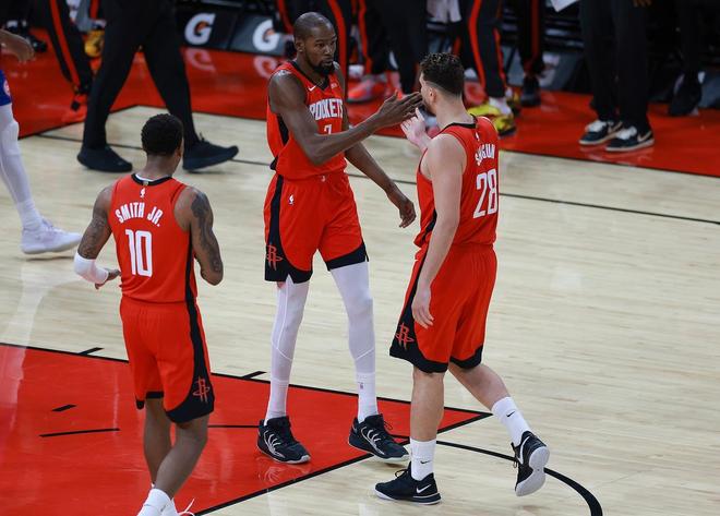 根据赛程安排,火箭队背靠背打完费城76人队和活塞队之后,将有两天的休息时间,这对于火箭队来说实在是太宝贵了。毕竟杜兰特前面两场比赛一共打了85分钟,砍下了68分,他实在是太过劳累,休息两天对于缓解杜兰特的疲劳有非常大的帮助。