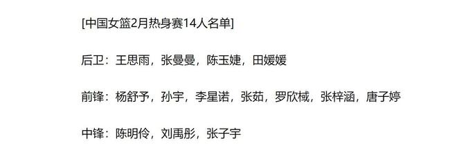 官宣!中国女篮公布最新一期大名单,王思雨、张子宇、刘禹彤领衔