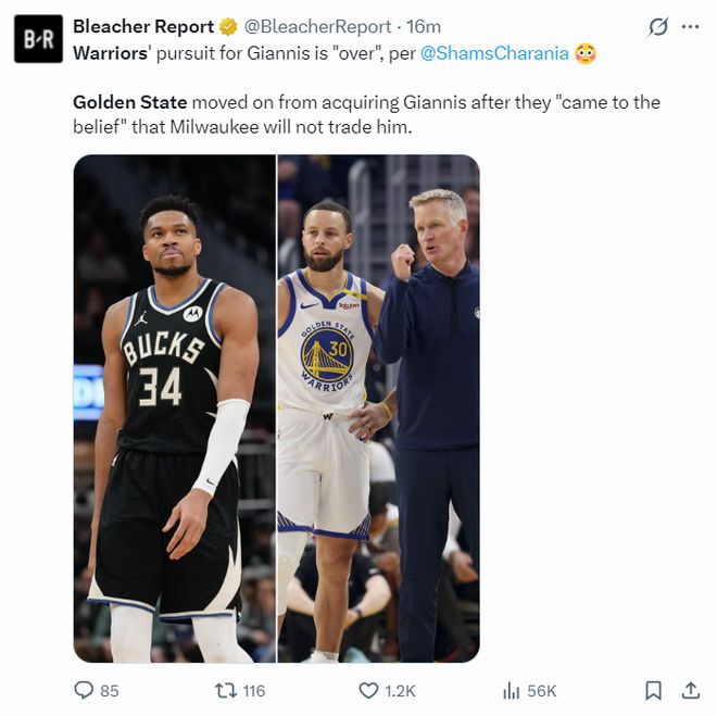 根据Shams的报道,这两笔交易的达成也宣告勇士队追逐扬尼斯-阿德托昆博结束了。勇士队确信雄鹿不会将扬尼斯交易出去。