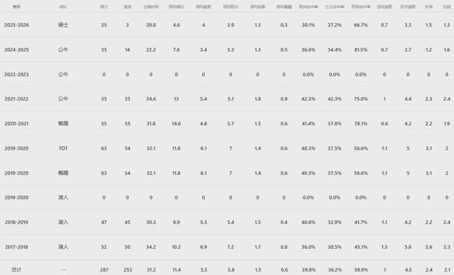 这哥们本赛季至今出战35场比赛首发3次,场均上阵20.8分钟,得到4.6分4板3.9助1.3断,三项命中率30.1%、27.2%和66.7%。