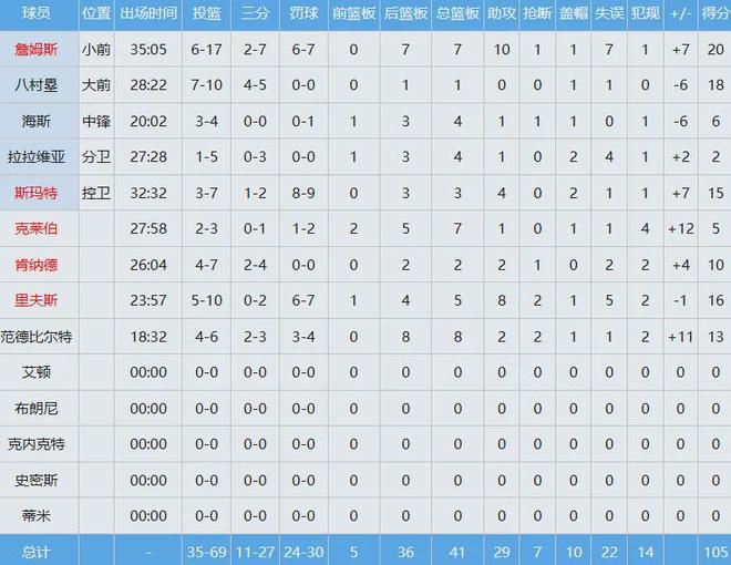 用文森特+一个次轮签换来的肯纳德,此役完成了湖人生涯首秀,替补出战约26分钟,投篮7中4,其中三分4中2贡献10分2板2助1断,正负值+4。
