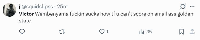 三节打完还有刺蜜对文班亚马的表现不满:文班亚马太烂了,他竟然无法在勇士的矮子阵容里面得分。