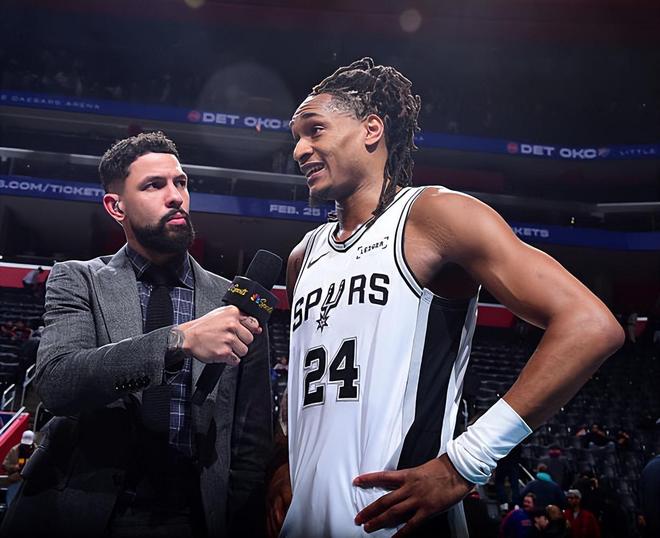 本场比赛中,马刺的先发侧翼大将德文-瓦塞尔(Devin Vassell)总算是打出了一场出色的表现。瓦塞尔全场出场36分19秒,投篮14中10,三分线外11中7,罚球2中1,得到了全场最高分28分外加2篮板4助攻1盖帽的数据,还有1次失误和2次犯规,正负值为+11。瓦塞尔在进攻端终于发挥出了自己在外线投篮方面的能力,命中了大量的三分,展现出了应有的水准。除此之外,瓦塞尔也是能够在传球和组织方面起到一定的作用,他在进攻端的功能非常全面。瓦塞尔在防守端的表现也是值得肯定的,同样是起到了一定的作用的。瓦塞尔在本场比赛中也算是将自己的特点完全发挥了出来,为球队的胜利提供了巨大的帮助。