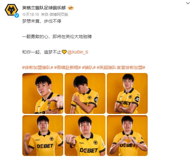 北京时间30日,英格兰足球超级联赛(英超)狼队足球俱乐部官方宣布,中国年轻中场徐彬正式以自由转会方式加盟球队。