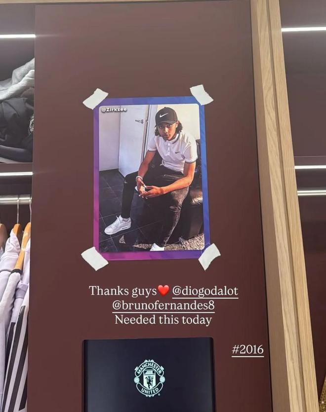 曼联队内有人不仅找到了齐尔克泽当年坐在沙发扶手上摆拍的照片,还直接把它贴了出来。