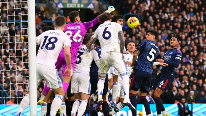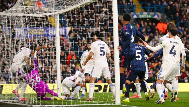 三球领先的阿森纳通过换人,继续向利兹联的防线施压,第79分钟,廷贝尔边路传中,热苏斯的头球力量十足,但顶得太正。