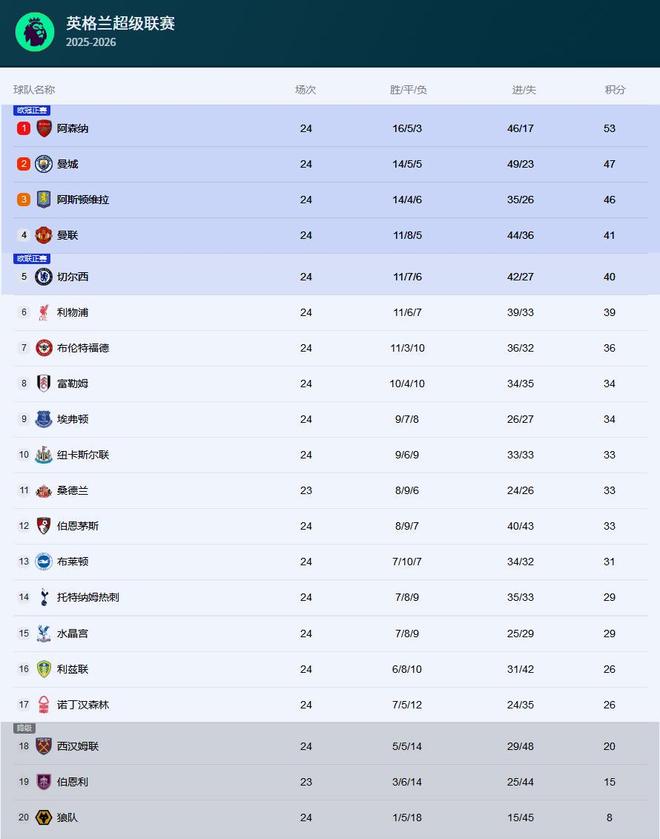 热闻|随着维拉爆冷,曼城战平,曼联三连胜!英超最新积分榜出炉