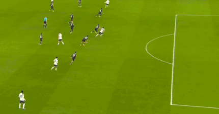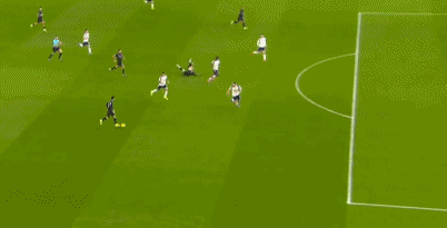 下半场,托特纳姆热刺强势反扑,第53分钟,索兰克乱战中打进一球,慢动作显示,索兰克射门时并没有踢到足球,而是踢在曼城后卫的脚腕上将球打进的。