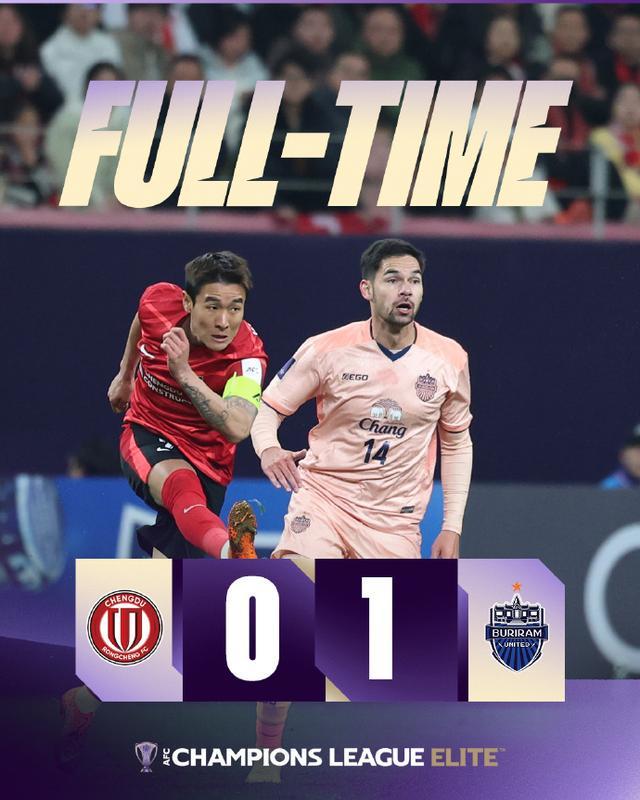 同样主场作战,经历换帅的成都蓉城队也以 0 比 1 不敌武里南联队。上半场,蓉城新援韦林顿・席尔瓦屡造威胁,申德勒射门击中立柱,廖力生吃到黄牌,武里南联一粒进球被吹越位;下半场,比索利爆射破门,胡荷韬门线救险。最终,蓉城 0-1 不敌武里南联,阿洛伊西遭遇执教开门黑。积分榜上,蓉城 7 轮 1 胜积 6 分暂居第 10 位,距晋级区 2 分,理论上仍有晋级可能;武里南联积 11 分暂居第 4 位。